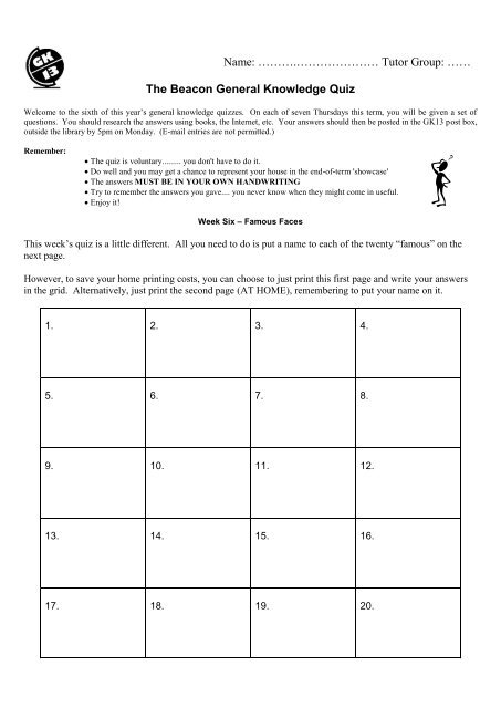 The Beacon General Knowledge Quiz Beaconict Com
