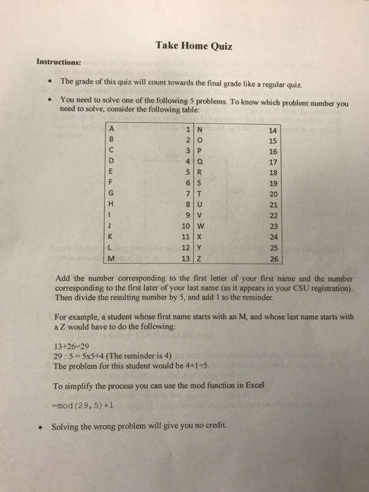 Solved Take Home Quiz Instructions The Grade Of This Qui