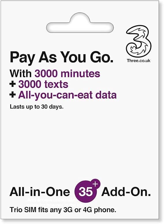 Three Payg All In One 15 Sim 3000mins 3000texts 10gb Data