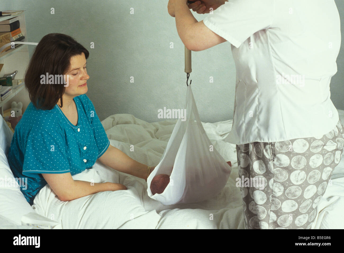 Midwife On Home Visit Calculating Due Date Of Patients Baby Stock