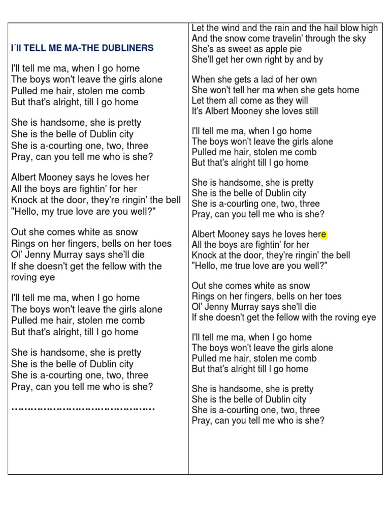 Note: Copyright of all images in tell me ma when i go home dubliners content depends on the source site. We hope you do not use it for commercial purposes.