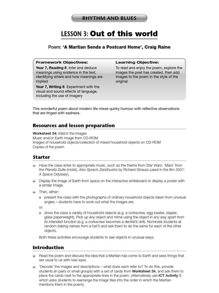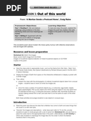 English Worksheets Craig Raine Analysis A Martian Sends A